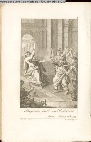 Strepsiades faellt in Froschteich. / Schink's Abdera 1 Th. p. 133