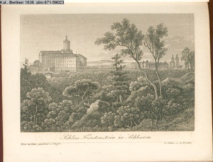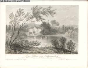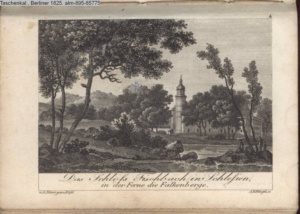 [Ansicht von Wufflens le Château] Illustration zu »Die vier Fräulein von Wüfflens. Nach der ungedruckten, französischen Handschrift der Frau von Montolieu« INr 53032, Obj 60