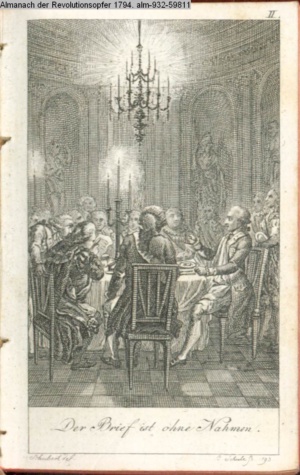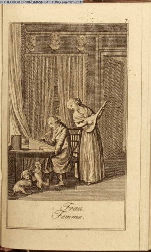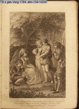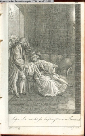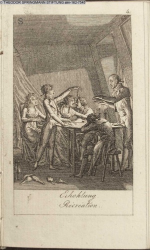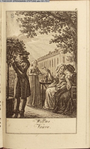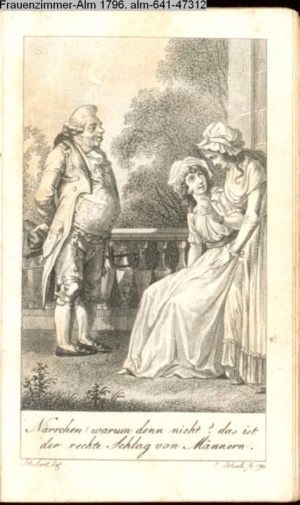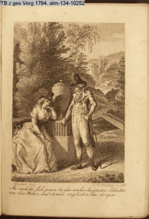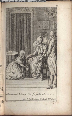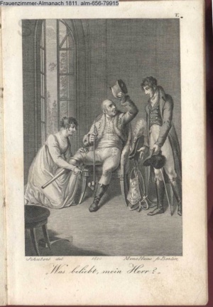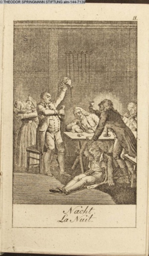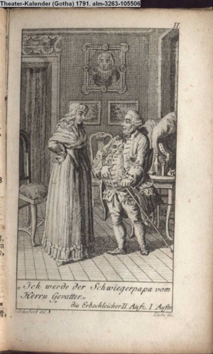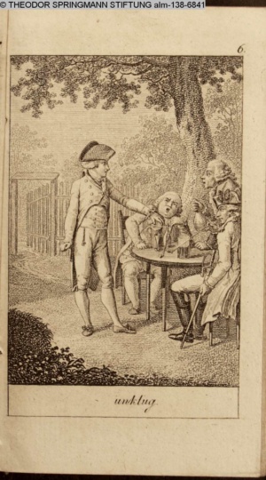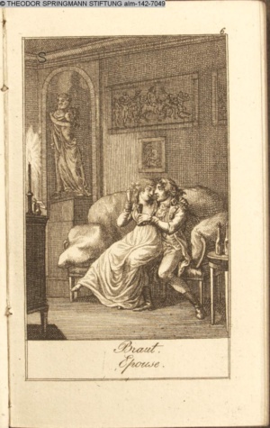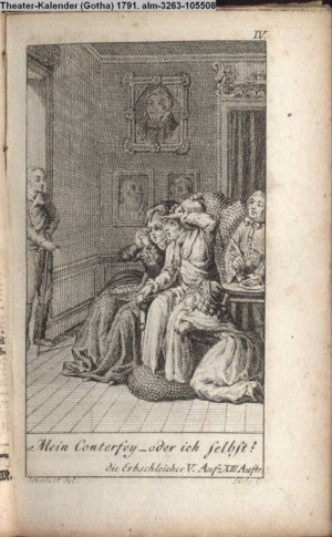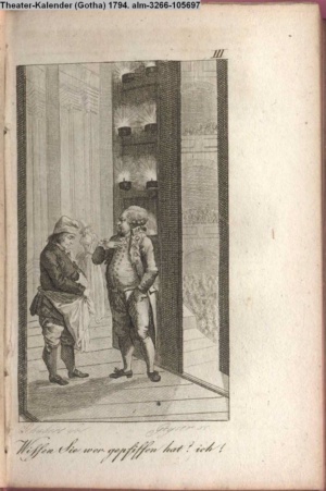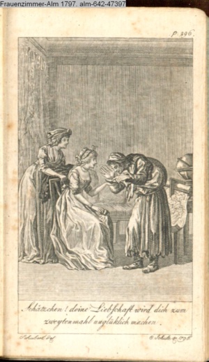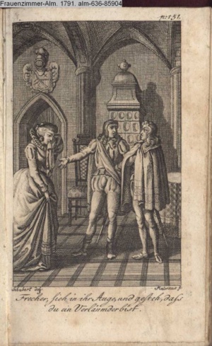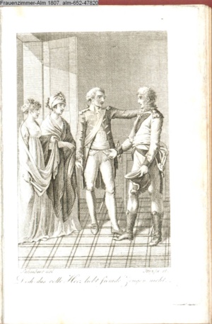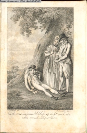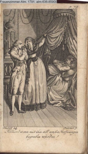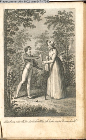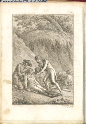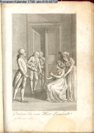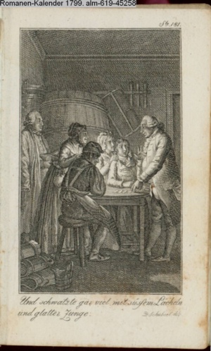 Graphik im Kalendarium paginiert V. Illustration zu »Die Wette oder: die beschämte Eifersucht«