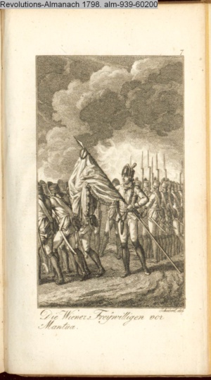 Illustration zu »Einige Denkmahle des Edelmuths und der Tapferkeit aus dem jetzigen Kriege wider die Türken / 2. Großer Muth einiger Oesterreichischen Soldaten« INr 75607, Obj 32