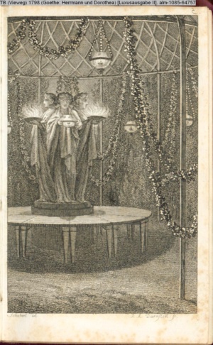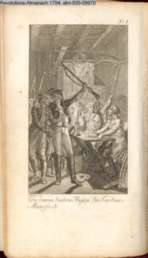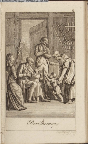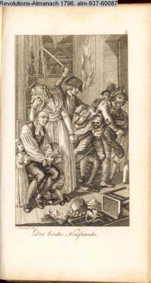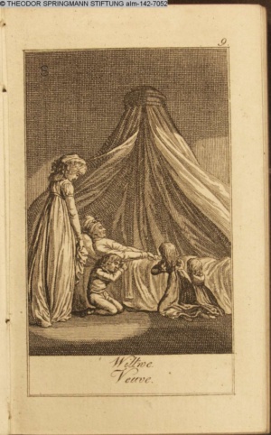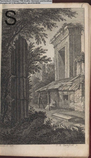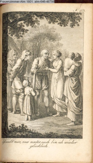 Graphik im Kalendarium paginiert III. Illustration zu »Die gerettete Häuslichkeit, oder: der wiedergewonnene Gatte«