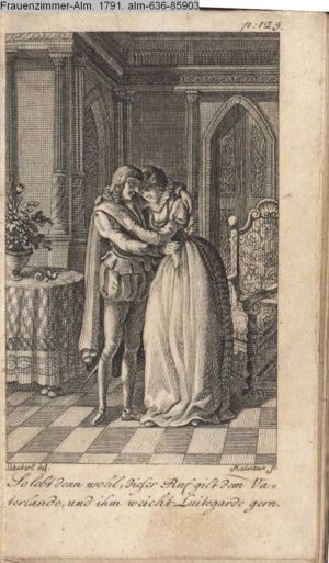 So lebt denn wohl, dieser Ruf gilt dem Va- / terlande, und ihm weicht Luitgarde gern.